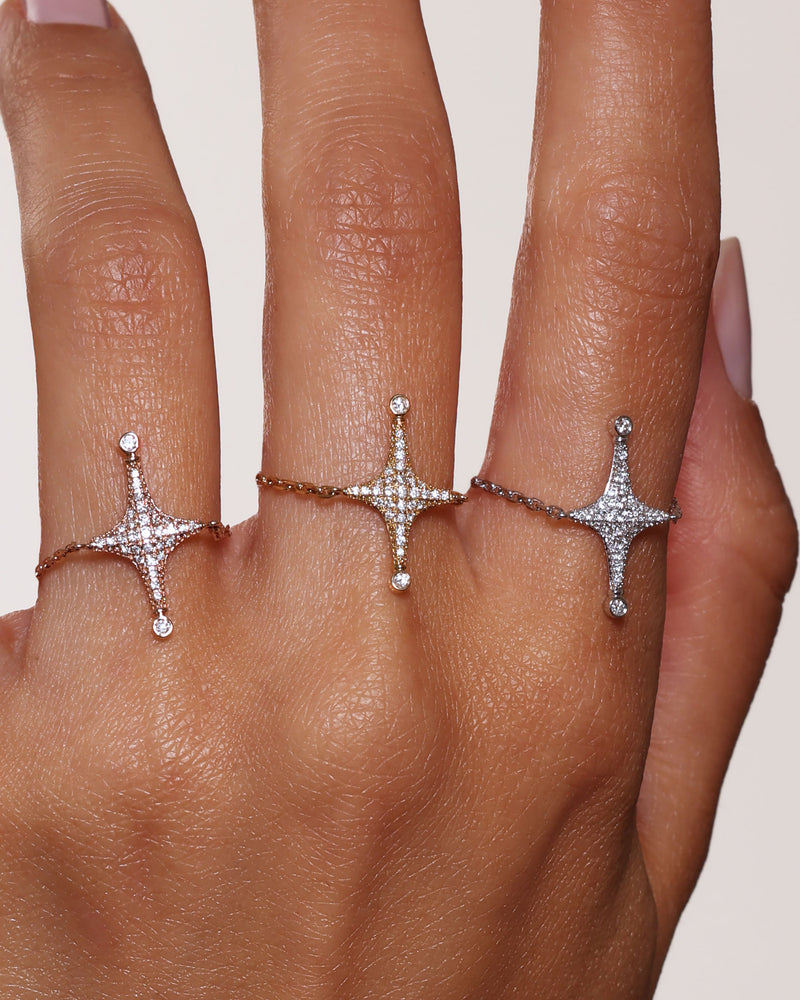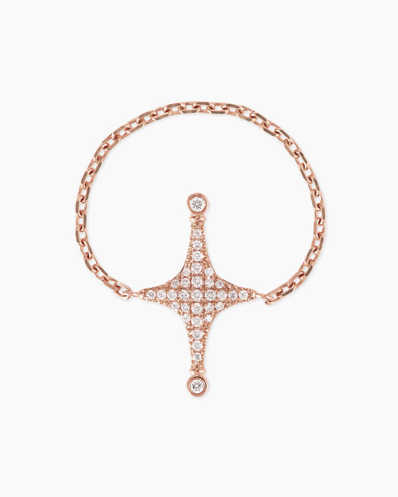 Crafted in 18k solid gold and set with natural diamonds in a pavé setting, the Aurora ring takes its form from the iconic Saudi sword—a design that blends strength with an unmistakable beauty.
