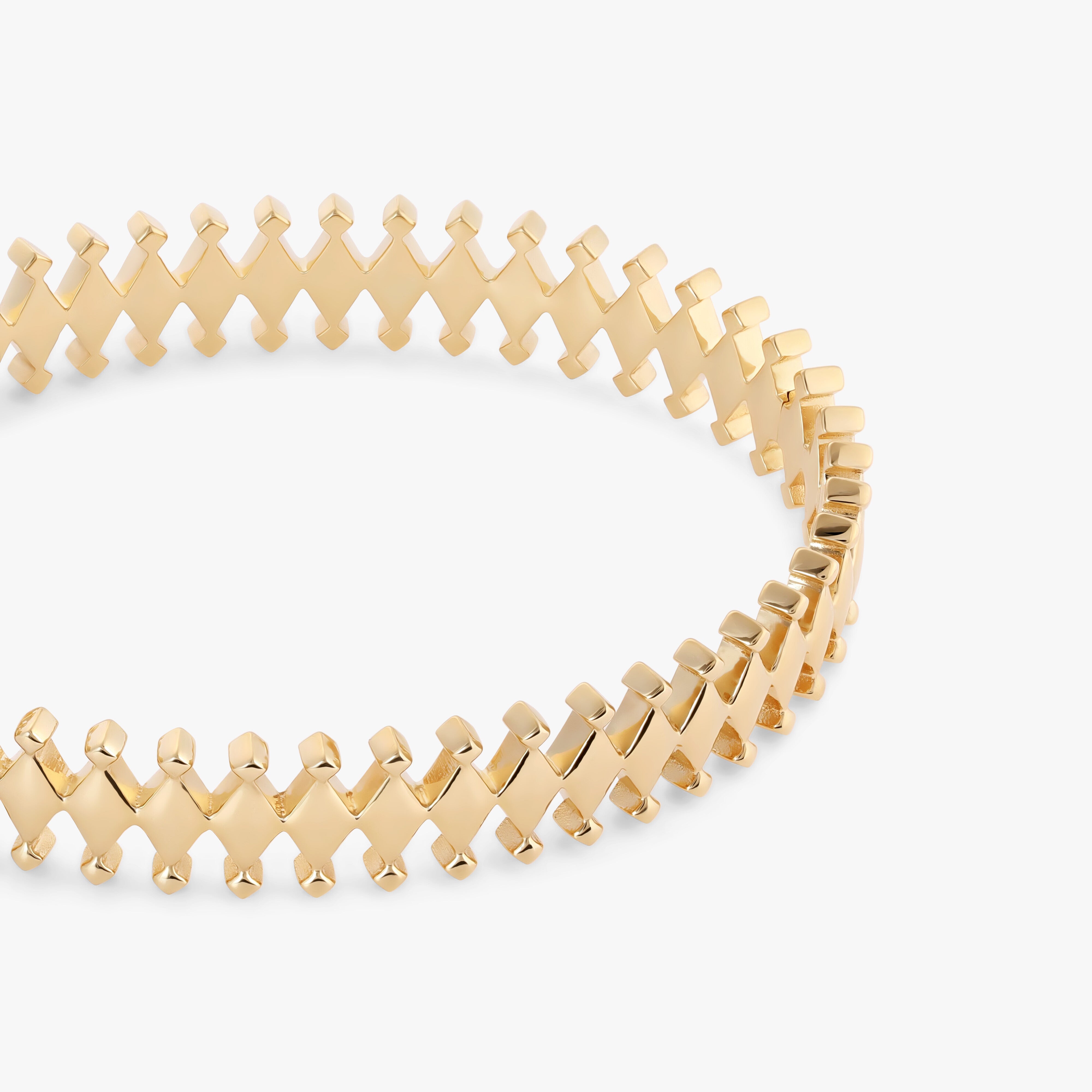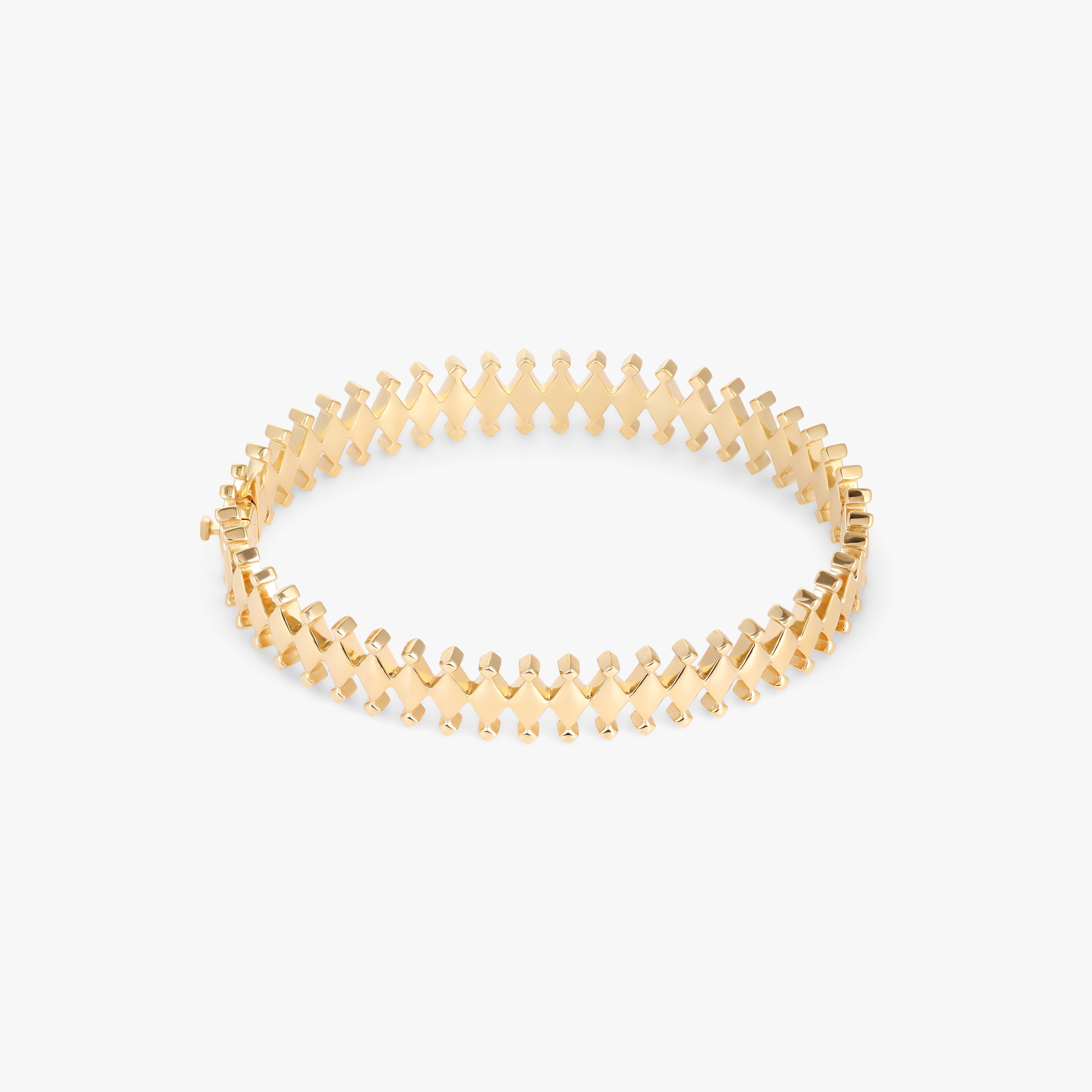 Step into Saudi Arabia's Legacy with our Sahra bangle. Inspired by intricate architectural details, this design captures the essence of the Kingdom's artistic heritage. Meticulously handcrafted in 18k yellow gold, this bangle features an intricate and geometric pattern that serves a tribute to Nadji element and Al-Sadu patterns. Wear alone or stacked with other favourites to elevate any outfit with a touch of refined sophistication.