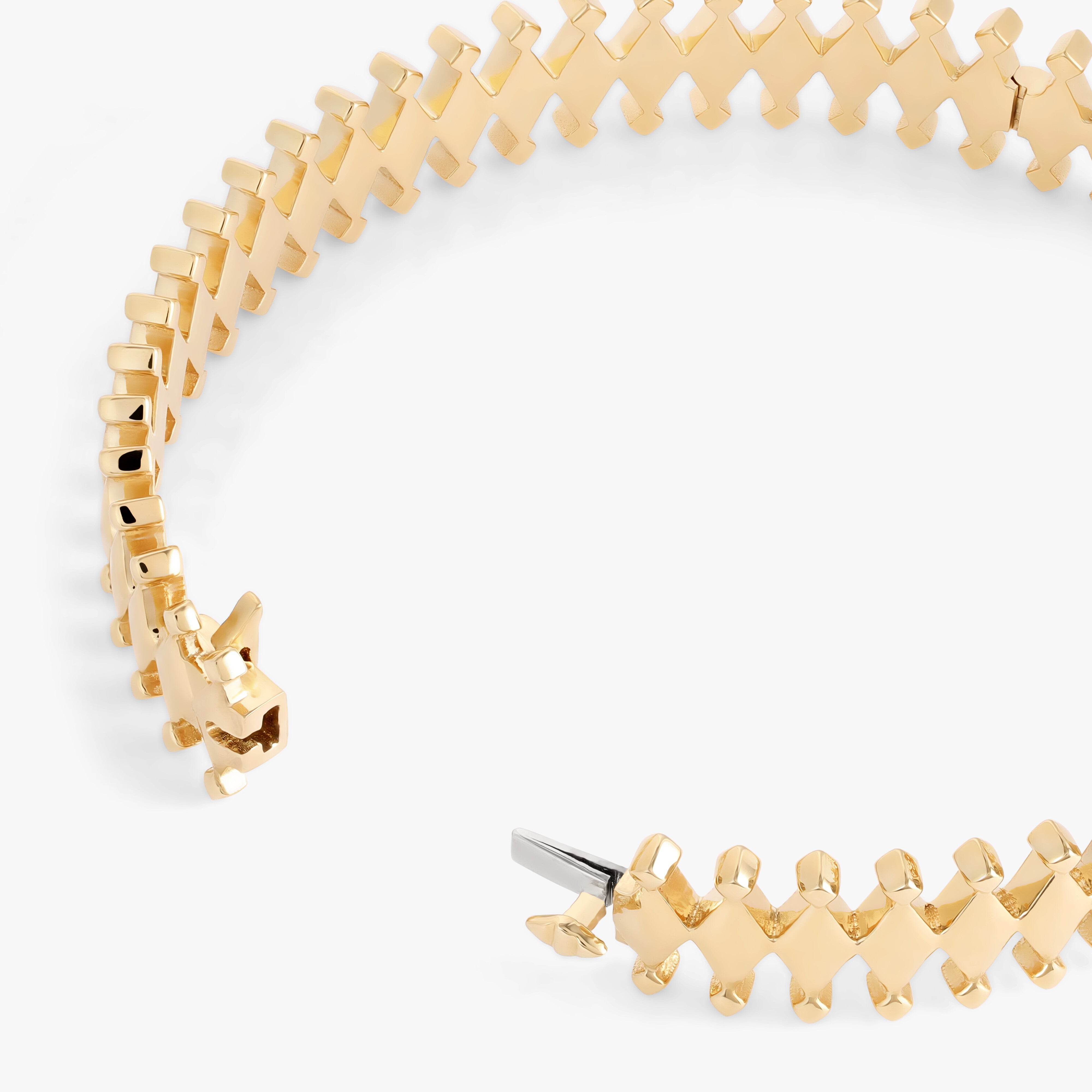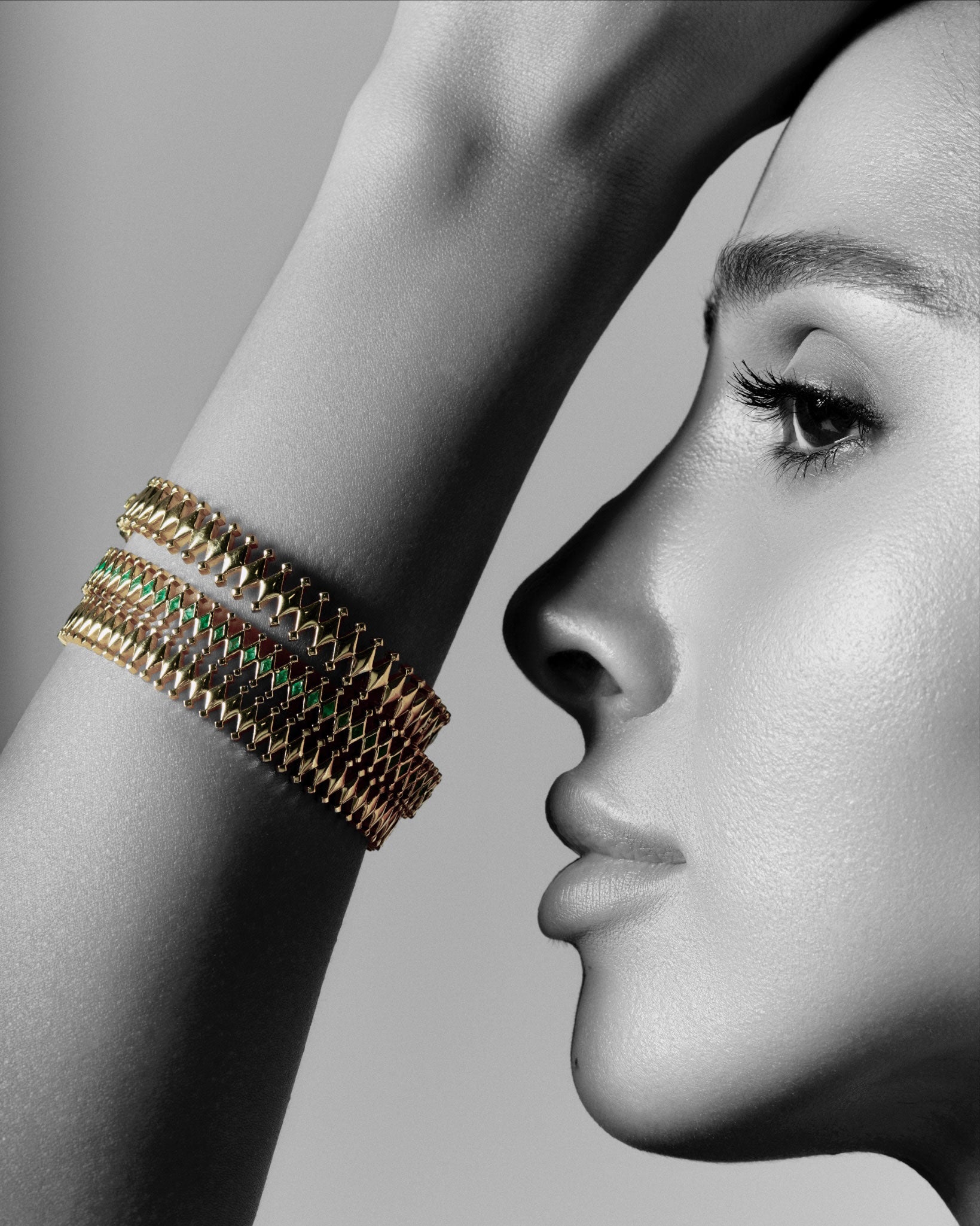 As part of the Foug collection, this elegant bangle blends traditional Saudi elements with contemporary style. It is handcrafted in 18k yellow gold with a total weight of 15.82 grams.